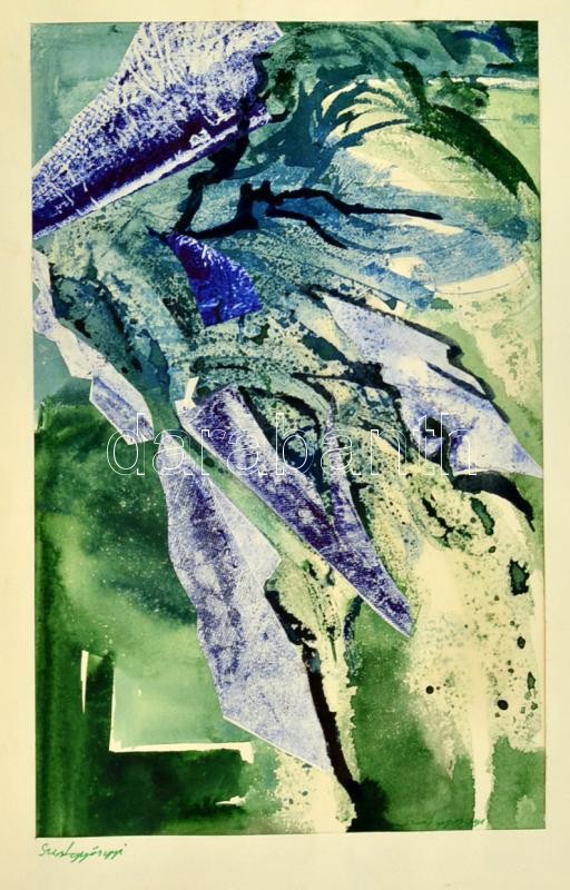 Beschreibung: Szentgyörgyi jelzéssel: Kompozició. Akvarell, papír, 25×16 cm
