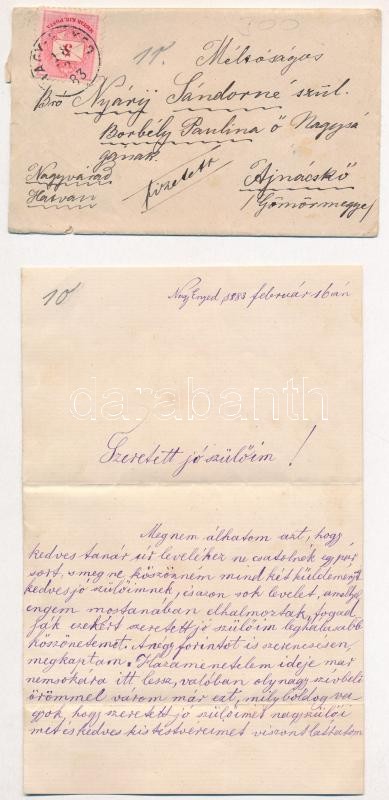 1883 Nagyenyed, Nyáry László (?-?) levele édesanyjának, Nyáry Sándorné... https://www.darabanth.com/de/290-Fernauktion/290.0/Andere-Sammelgebiete/Historische-Dokumenten-Handschriften~100018/1883-Nagyenyed-Nyary-Laszlo--levele-edesanyjanak-Nyary-Sandorne-Borbely-Paulinanak-~II1531891