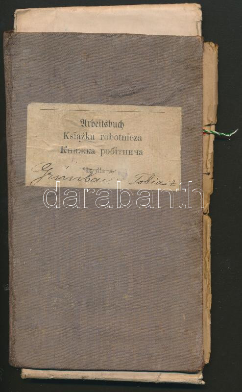 1906 Kisinyevi zsidó kereskedő munkakönyve (duplikát) többek között magyar bejegyzéssel, magyar hiteles fordítású kiegészítésekkel, okmánybélyegekkel / labour book of a Jewish salesman from Chisinau