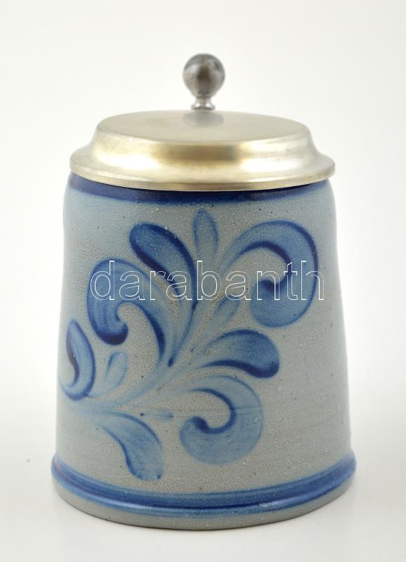 Beschreibung: Alumínium fedeles söröskorsó, kézzel festett mázas kerámia, jelzett, m:16 cm