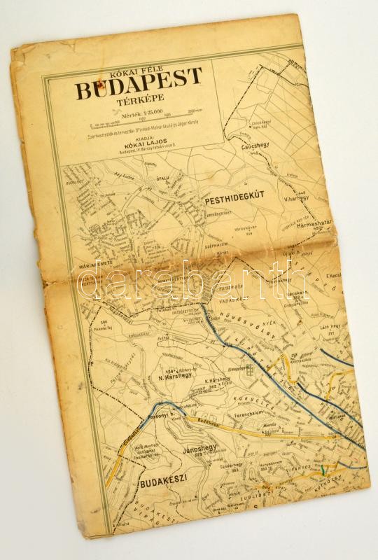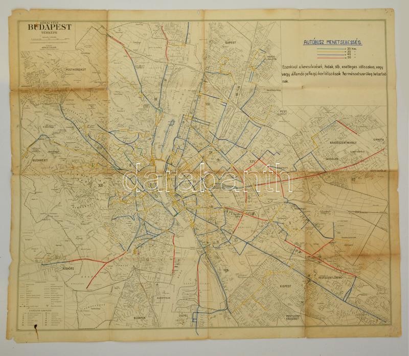 cca 1950 Kókai féle Budapest térképe, 1:25.000, menetsebességjelöléssel, Szerk. és terv.: Dr. Irmédi-Molnár László és Jäger Károly, Kókai Lajos, kissé viseltes állapotban, a hajtások mentén szakadásokkal, 75×92 cm