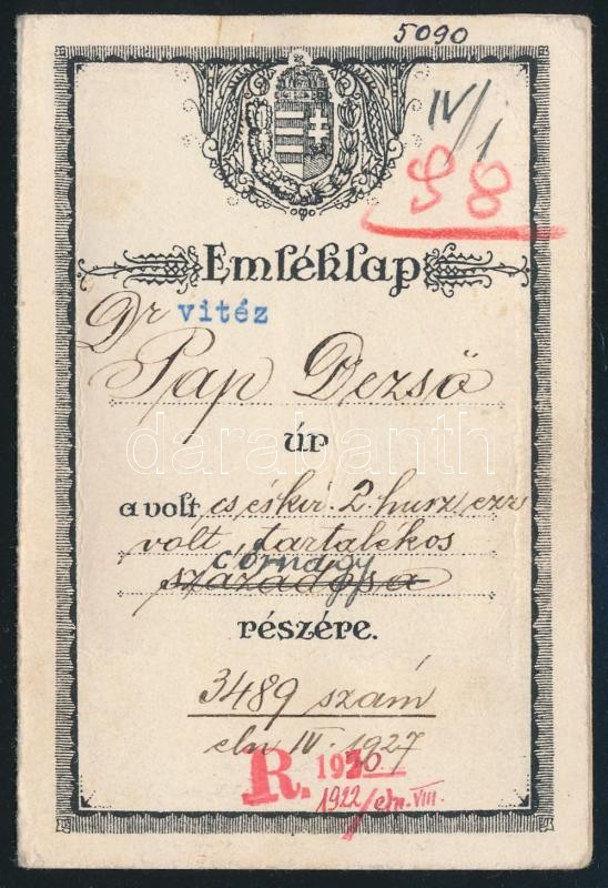 1927 Bp., Személyre szóló fényképes vitézi emléklap https://www.darabanth.com/de/290-Fernauktion/290.0/Andere-Sammelgebiete/Militaria~100026/1927-Bp-Szemelyre-szolo-fenykepes-vitezi-emleklap~II1531408