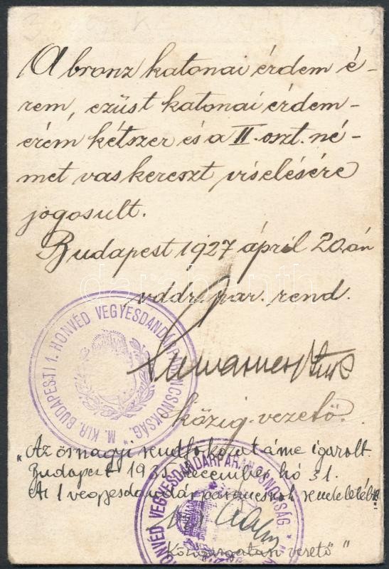 Beschreibung: 1927 Bp., Személyre szóló fényképes vitézi emléklap