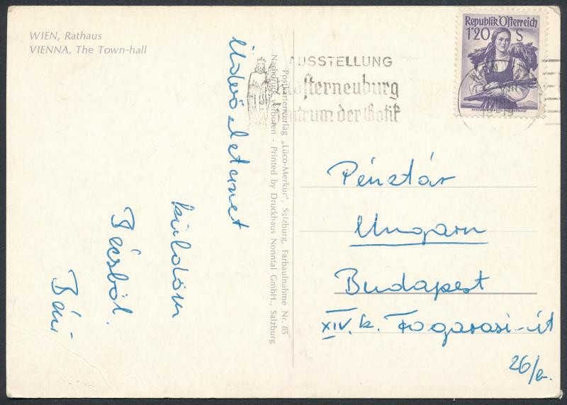 Beschreibung: cca 1960 Káposzta Benő (1942- ) labdarúgó aláírása és sorai egy Bécsből küldött képeslapon.