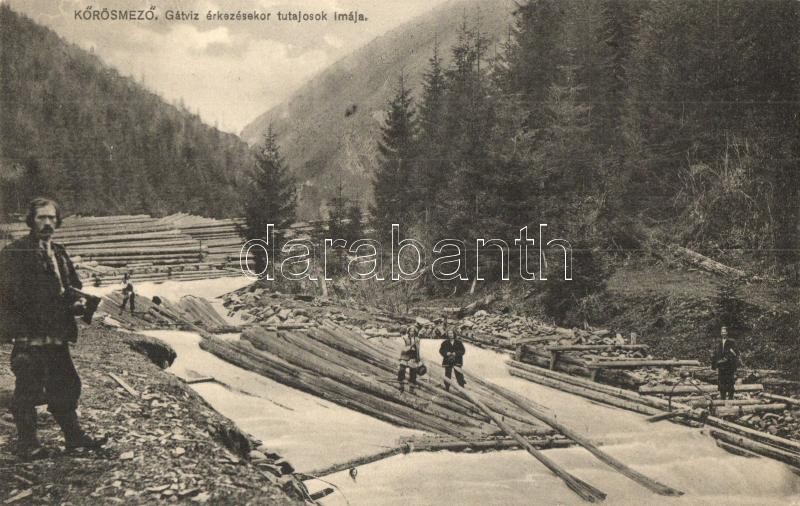 Kőrösmező, Jasina; Gátvíz érkezéskor tutajosok imája / prayer of rafte... https://www.darabanth.com/de/290-Fernauktion/290.0/Ansichtskarten/Karpatenukraine~300009/Korosmezo-Jasina-Gatviz-erkezeskor-tutajosok-imaja-prayer-of-rafters~II1530682