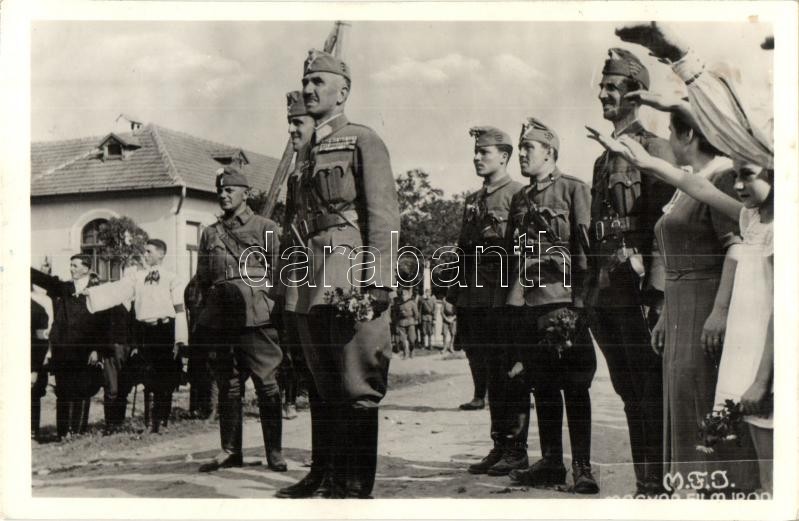Beschreibung: 1940 Beszterce, Bistritz, Bistrita; bevonulás / entry of the Hungarian troops, 'Szászrégen visszatért' So. Stpl.