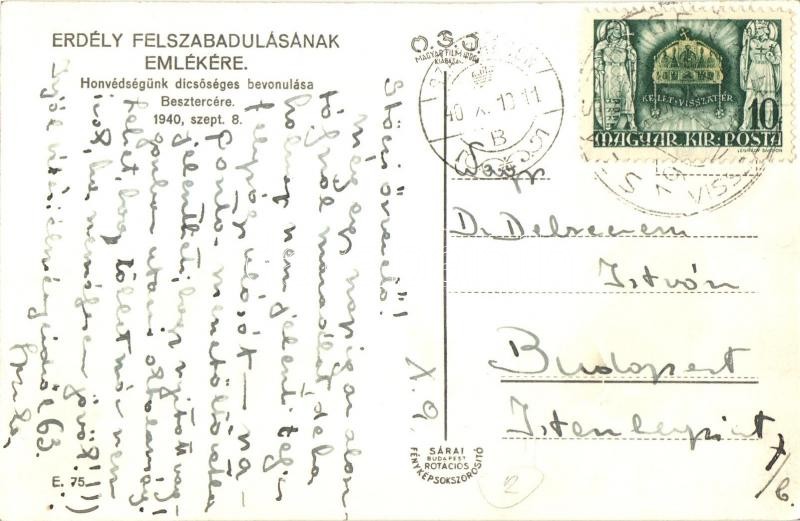 1940 Beszterce, Bistritz, Bistrita; bevonulás / entry of the Hungarian... https://www.darabanth.com/de/290-Fernauktion/290.0/Ansichtskarten/Siebenburgen~300007/1940-Beszterce-Bistritz-Bistrita-bevonulas-entry-of-the-Hungarian-troops-Szaszregen-vissza~II1533044