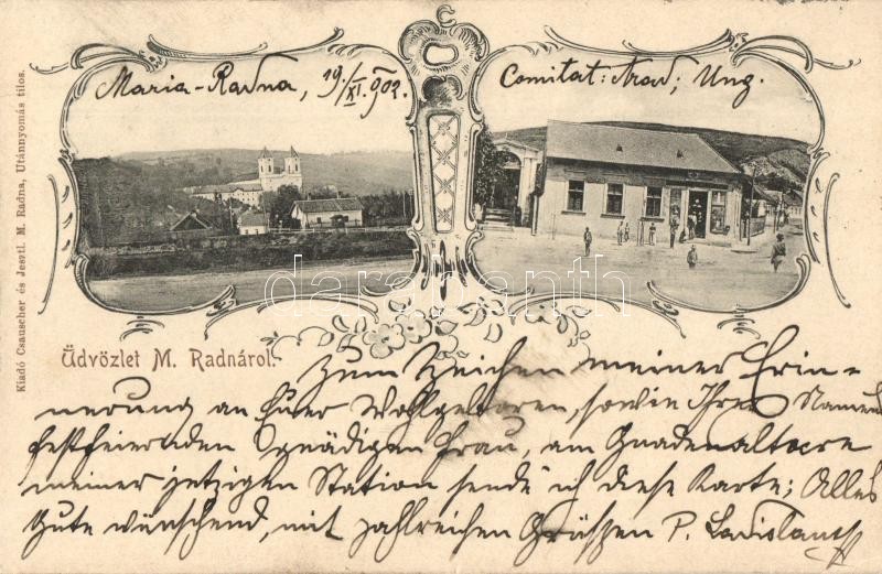 Beschreibung: Máriaradna, Radna; üzlet, kiadja Csauscher és Jesztl / shop, Art Nouveau floral (EK)