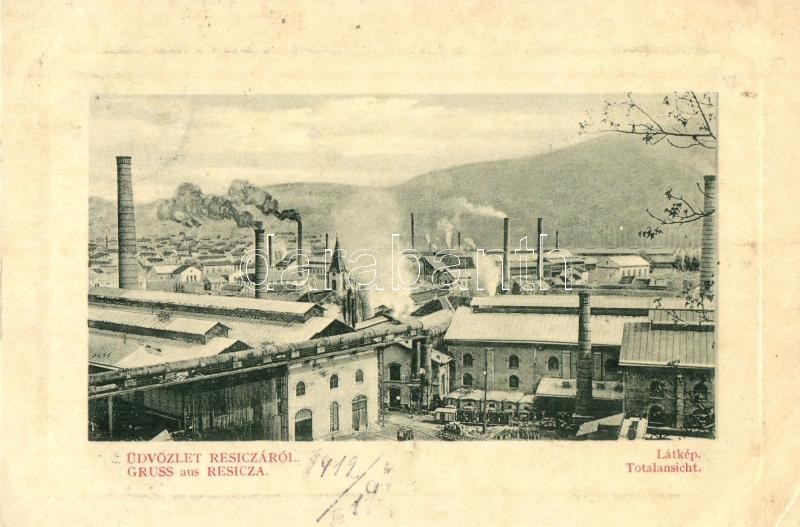 Resica, Resita; Acélgyár, kohók, W. L. Bp. 134. / steel works, furnace... https://www.darabanth.com/de/290-Fernauktion/290.0/Ansichtskarten/Siebenburgen~300007/Resica-Resita-Acelgyar-kohok-W-L-Bp-134-steel-works-furnace-factory-azott-wet-dam~II1531766