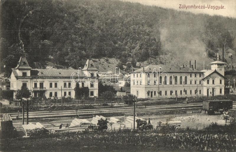 Beschreibung: Zólyombrézó, Podbrezová; Vasgyár, vendéglő / restaurant, iron works, factory (EK)