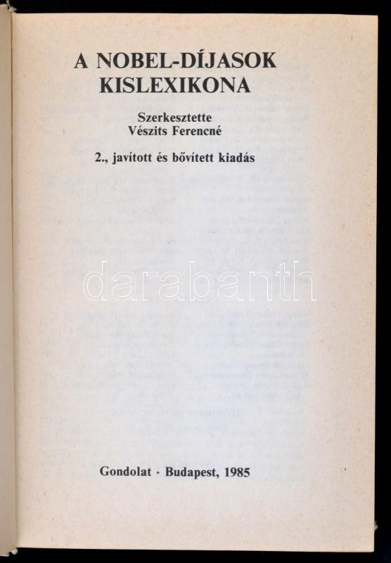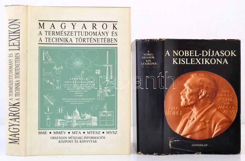Vegyes könyvtétel, 2 db: A Nobel-díjasok kislexikona. Szerk.: Vészits Ferencné. Bp., 1985, Gondolat. 2., javított és bővített kiadás. Kiadói egészávszon-kötés, kiadói papír védőborítóban. Magyarok a terményettudomány és technika történetében. Életrajzi lexikon A-tól Z-ig. Szerk.: Nagy Ferenc. Bp., 1992, Országos Műszaki Információs Központ és Könyvtár. Kiadói egészvászon-kötés, kiadói papír védőborítóban.