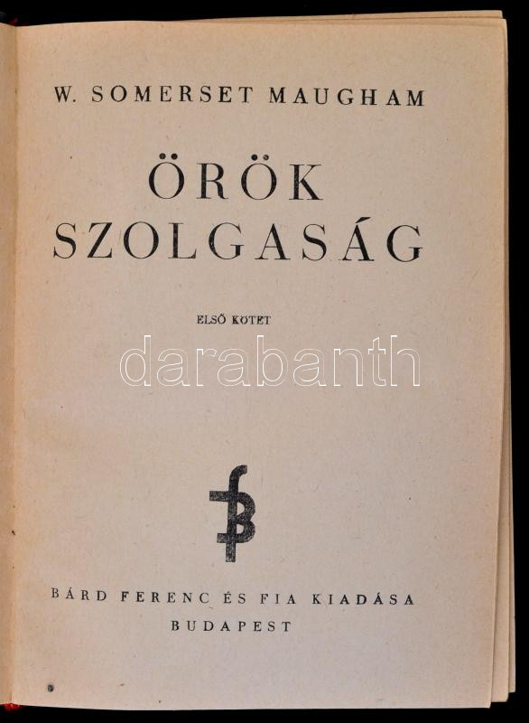 W. Somerset Maugham: Örök szolgaság I-II. Fordította Gáspár Miklós, és Lányi Miklós. Bp., é.n., Bárd Ferenc és Fia. Kiadói kissé kopottas félvászon-kötés. Jó állapotban.