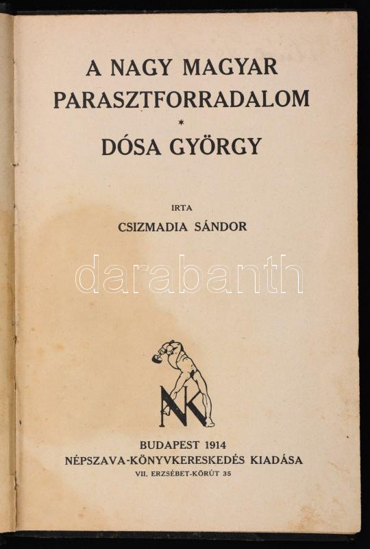 Csizmadia Sándor: A nagy magyar parasztforradalom. Dósa György. Budapest, 1914, Népszava-Könyvkereskedés Kiadása. Átkötött félvászon kötés. Tulajdonosi névbejegyzésekkel.