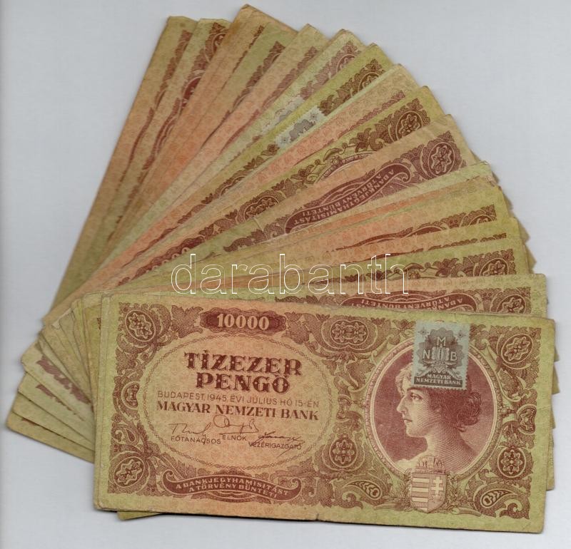 Beschreibung: 1945. 10.000P (30x) egy része "MNB" bélyeggel T:III,III-