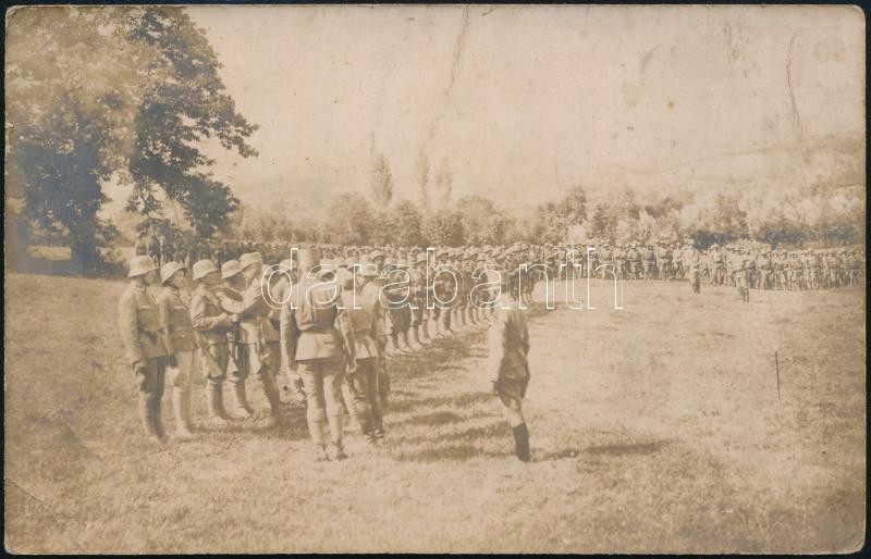Beschreibung: cca 1914-1918 Arad, kitüntetési ceremónia a 105. gyalogezrednél, postán megküldve, 9×14 cm
