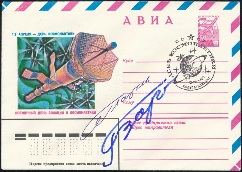 Jurij Glazkov (1939-2008) és Viktor Gorbatko (1934-2017) szovjet űrhajósok aláírásai emlékborítékon / Signatures of Yuriy Glazkov (1939-2008) and Viktor Gorbatko (1934-2017) Soviet astronauts on envelope