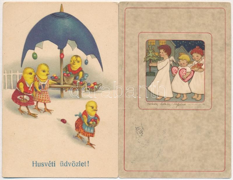 44 db RÉGI motívumlap, gyerek humor (John Wills), üdvözlőlapok, több litho és dombornyomott darab / 44 pre-1945 motive cards, child humour, greeting cards, many litho and Emb.