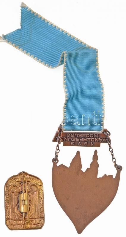 Ausztria 1972. "Moosburg Wanderfreunde - Ramsau - Winterwanderung" Br túrajelvény szalaggal (50x64mm) + Németország DN "Deutscher Scützenbund (Német Lövész Szövetség)" aranyozott, zománcozott jelvény T:2 Austria 1972. ""Moosburg Wanderfreunde - Ramsau - Winterwanderung" Br tour badge with ribbon (50x64mm) + Germany ND "Deutscher Scützenbund (German Shooting and Archery Federation)" gilt and enamelled badge C:XF