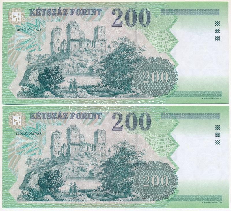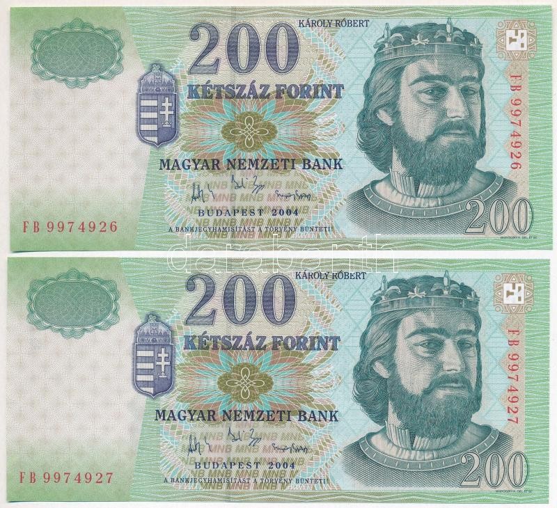 2004. 200Ft "FB" (2x) sorszámkövetők T:I https://www.darabanth.com/de/291-Fernauktion/291.0/Numismatik/Ungarische-Banknoten~200007/2004-200Ft-FB-2x-sorszamkovetok-TI~II1534072