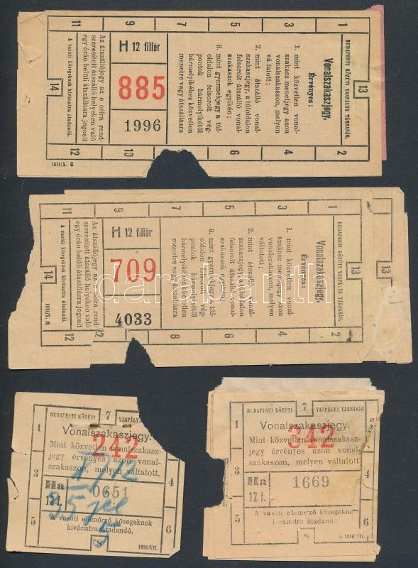 1914-1916 Budapesti Közúti Vaspálya Társaság (BKVT) 8 db vonalszakaszj... https://www.darabanth.com/de/292-Fernauktion/292.0/Andere-Sammelgebiete/Dokument~16/1914-1916-Budapesti-Kozuti-Vaspalya-Tarsasag-BKVT-8-db-vonalszakaszjegye-viseltes-allapotba~II1547548