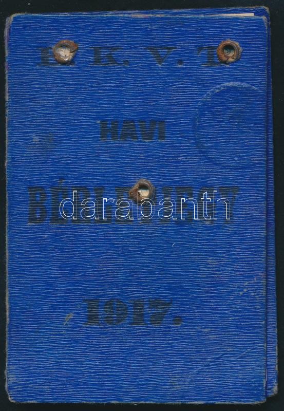 1917 Budapesti Közúti Vaspálya Társaság BKVT fényképes havi bérletjegy... https://www.darabanth.com/de/292-Fernauktion/292.0/Andere-Sammelgebiete/Dokument~16/1917-Budapesti-Kozuti-Vaspalya-Tarsasag-BKVT-fenykepes-havi-berletjegye~II1547984