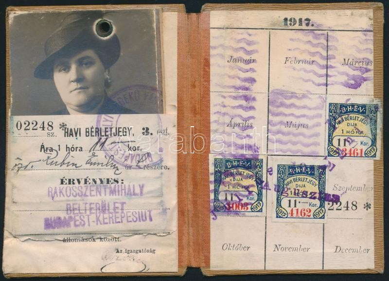 1917 Budapesti Közúti Vaspálya Társaság BKVT fényképes havi bérletjegy... https://www.darabanth.com/de/292-Fernauktion/292.0/Andere-Sammelgebiete/Dokument~16/1917-Budapesti-Kozuti-Vaspalya-Tarsasag-BKVT-fenykepes-havi-berletjegye~II1547990