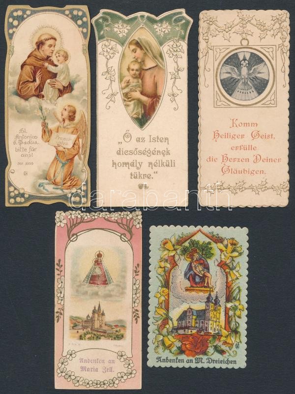 Beschreibung: 5 db dombornyomott, aranyozott litho szentkép, jó állapotban