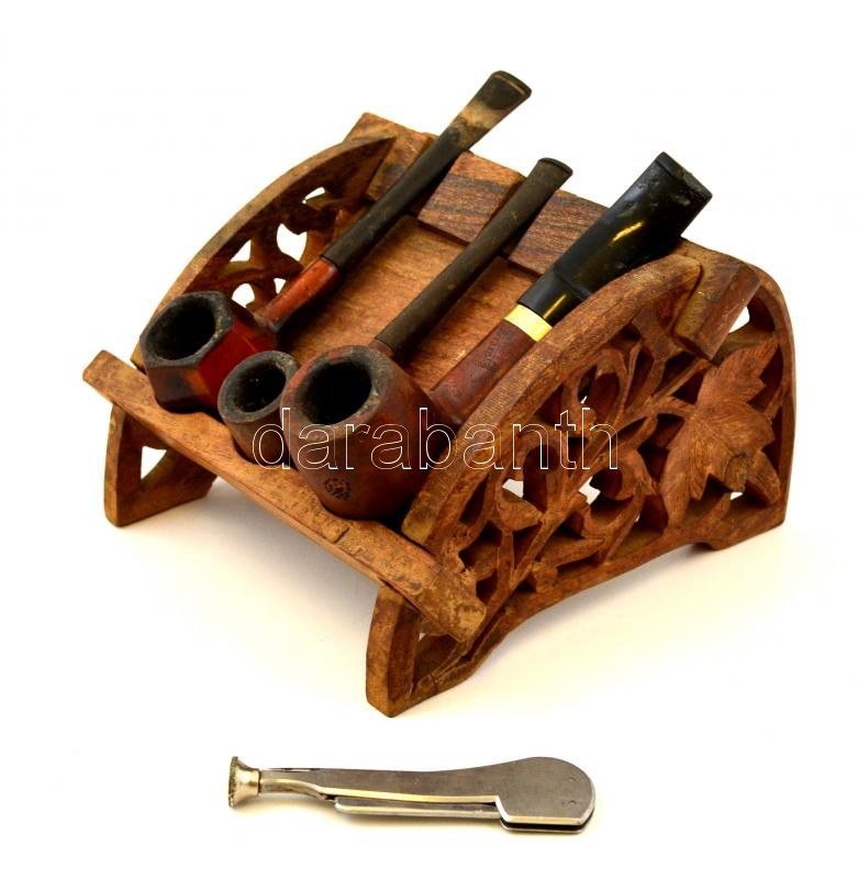 Fa pipatartó, 3 db pipával és fém szurkálóval, 16×16 cm https://www.darabanth.com/de/292-Fernauktion/292.0/Andere-Sammelgebiete/Flohmarkt~12/Fa-pipatarto-3-db-pipaval-es-fem-szurkaloval-16C39716-cm~II1546125