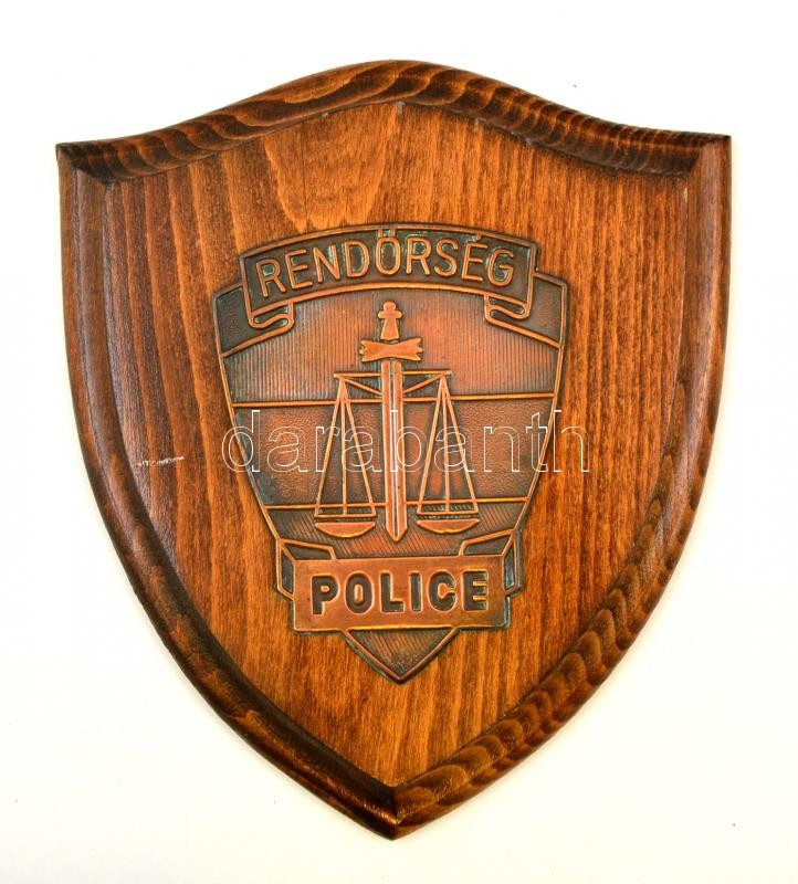 Rendőrség feliratú réz lemez, fára ragasztva, 20×17 cm https://www.darabanth.com/de/292-Fernauktion/292.0/Andere-Sammelgebiete/Flohmarkt~12/Rendorseg-feliratu-rez-lemez-fara-ragasztva-20C39717-cm~II1544509