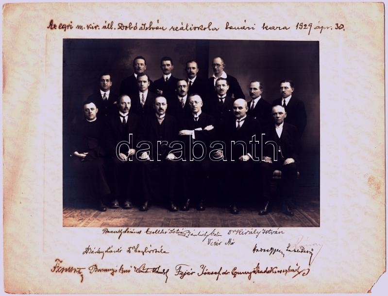 1929 Eger, a Dobó István reáliskola tanári kara Rónay műterméből, 16x2... https://www.darabanth.com/de/292-Fernauktion/292.0/Andere-Sammelgebiete/Foto~35/1929-Eger-a-Dobo-Istvan-realiskola-tanari-kara-Ronay-mutermebol-16x22-cm-karton-sarka-hi~II1543344