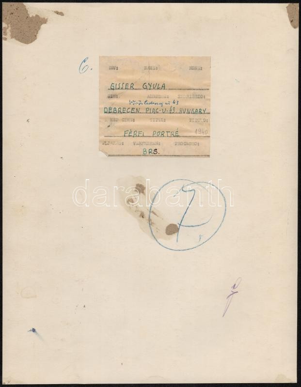 1940 Gisser Gyula (1901-1986): Férfi portré, feliratozott vintage fotó... https://www.darabanth.com/de/292-Fernauktion/292.0/Andere-Sammelgebiete/Foto~35/1940-Gisser-Gyula-1901-1986-Ferfi-portre-feliratozott-vintage-fotomuveszeti-alkotas-34x26~II1543716