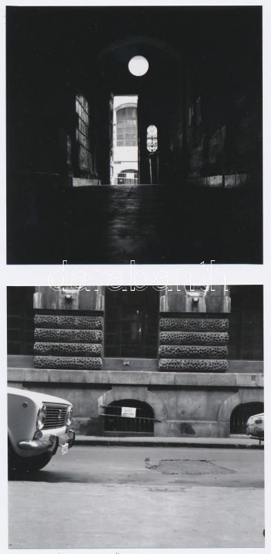 Beschreibung: 1979 Jankovszky György(1946-): Bentről ki, 2 db fotó, feliratozva, aláírt, pecséttel jelzett, kartonra kasírozva, 10x10 cm