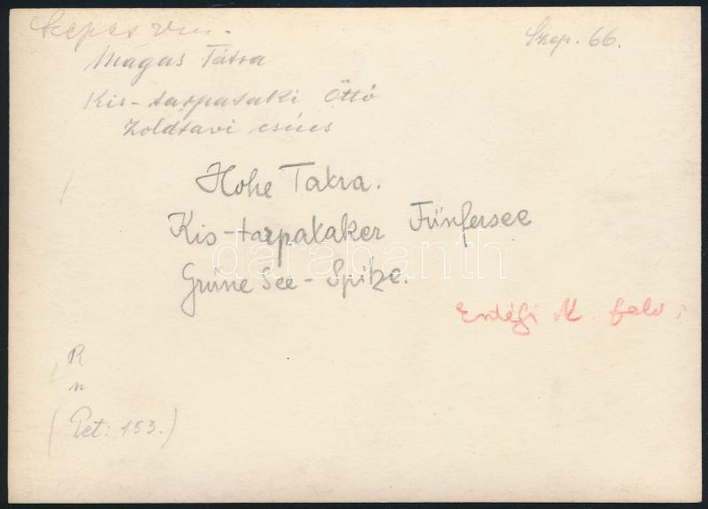 cca 1910 Magas-Tátra, Kis-tarpataki Öttó / Zöldtavi-csúcs, Erdélyi Mór felvétele, hátulján feliratozva, 11,5×16 cm / Vysoké Tatry, vintage photo, with notes on its back, 11,5×16 cm