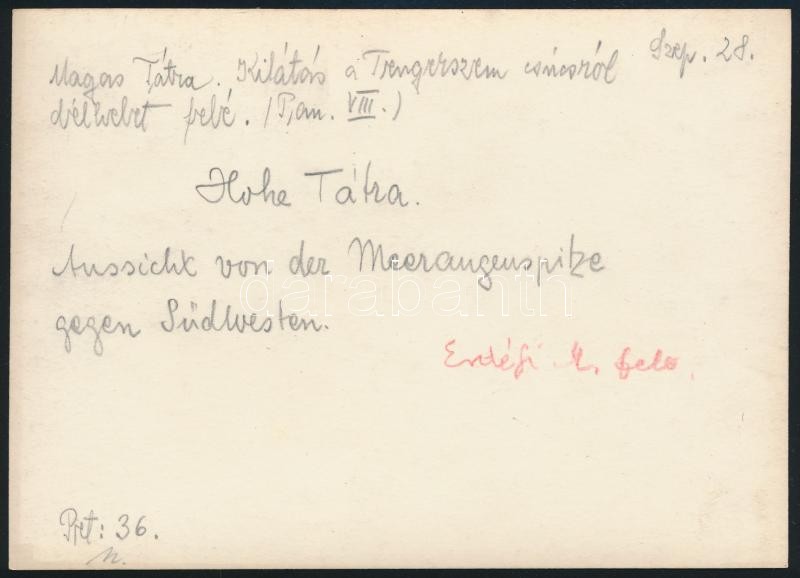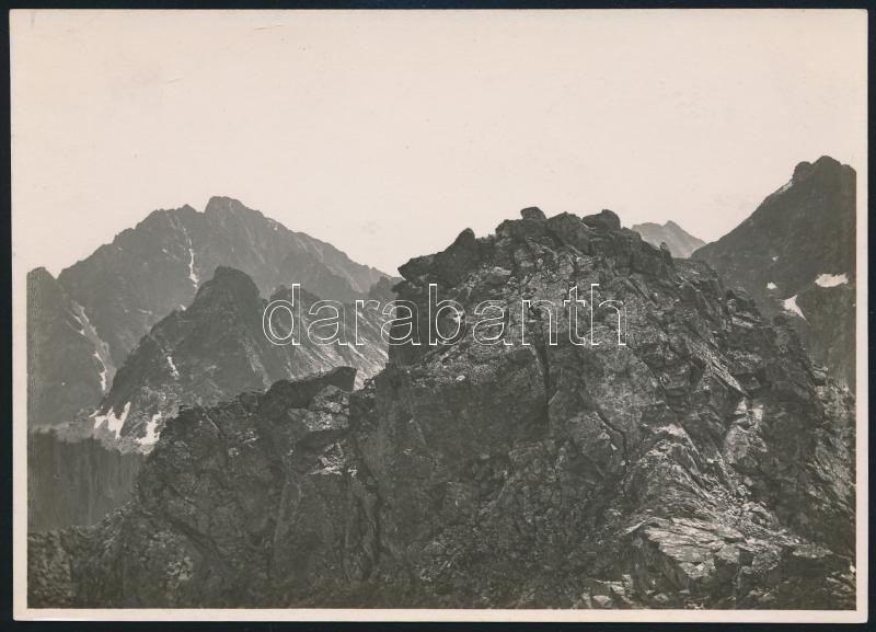 cca 1910 Magas-Tátra, kilátás a Tengerszem csúcsról délkelet felé, Erdélyi Mór felvétele, hátulján feliratozva, 11,5×16 cm / Vysoké Tatry, vintage photo, with notes on its back, 11,5×16 cm