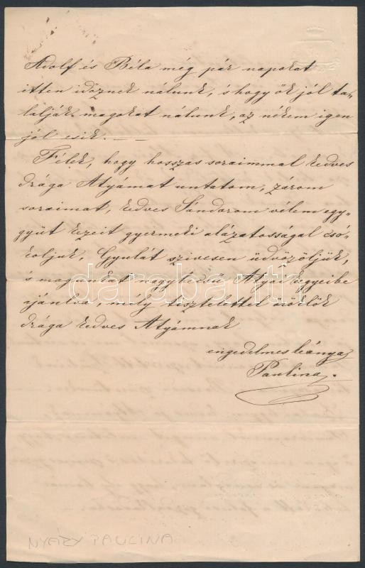 1868-1873 Nyári Paulina 2 db leve apjának, Báró Nyáry Antal belső titk... https://www.darabanth.com/de/292-Fernauktion/292.0/Andere-Sammelgebiete/Historische-Dokumenten-Handschriften~17/1868-1873-Nyari-Paulina-2-db-leve-apjanak-Baro-Nyary-Antal-belso-titkos-tanacsosnak-csalad~II1543128
