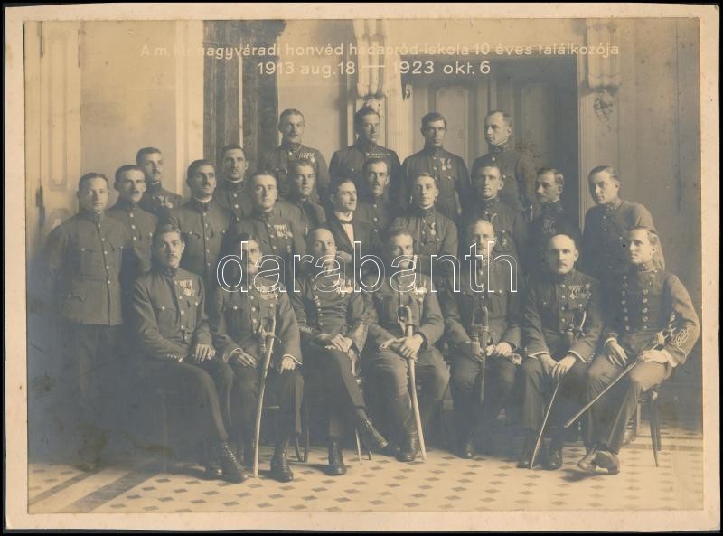 1923 A nagyváradi M. Kir Honvéd Hadapród-Iskola 10 éves találkozójának... https://www.darabanth.com/de/292-Fernauktion/292.0/Andere-Sammelgebiete/Militaria~28/1923-A-nagyvaradi-M-Kir-Honved-Hadaprod-Iskola-10-eves-talalkozojanak-tablofotoja-kartonr~II1547378