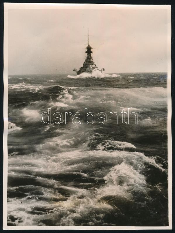 Beschreibung: 1937 Brit hadihajó, sajtófotó, hátulján feliratozva, pecséttel jelzett, 20×15 cm /