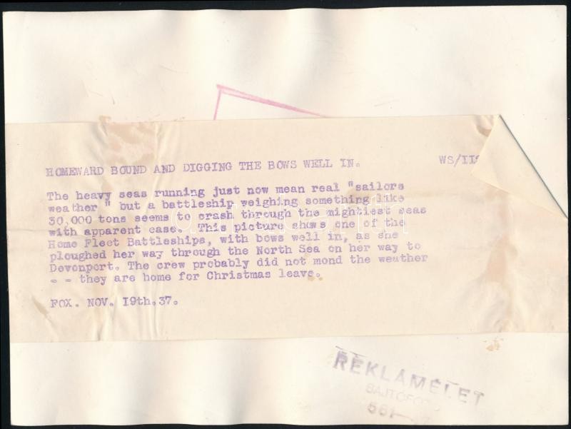 1937 Brit hadihajó, sajtófotó, hátulján feliratozva, pecséttel jelzett... https://www.darabanth.com/de/292-Fernauktion/292.0/Andere-Sammelgebiete/Militaria~28/1937-Brit-hadihajo-sajtofoto-hatuljan-feliratozva-pecsettel-jelzett-20C39715-cm-----1937-UK~II1542371