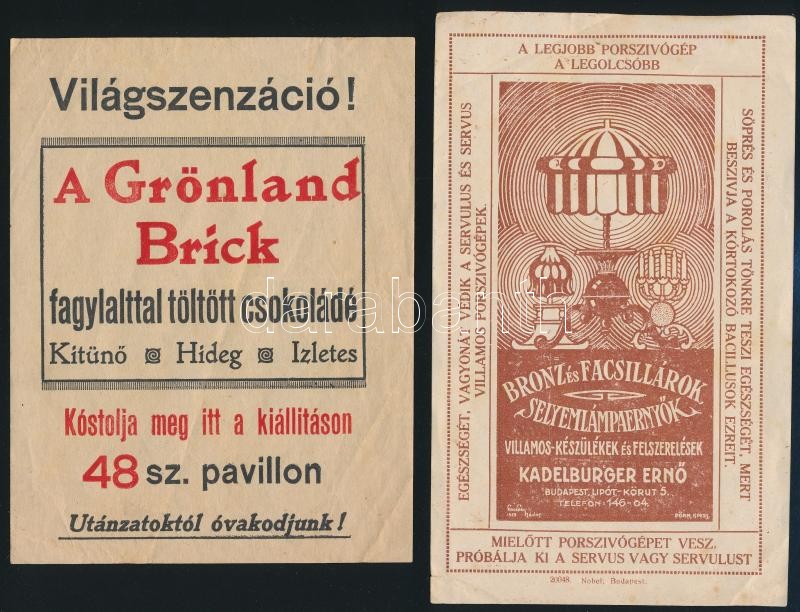 Beschreibung: 6 db reklámcímke és számolócédula(Herz Szalámi, Réthy Pemetefű, Kentaur, Kadelburger Ernő csillárok, Grönland Brick)