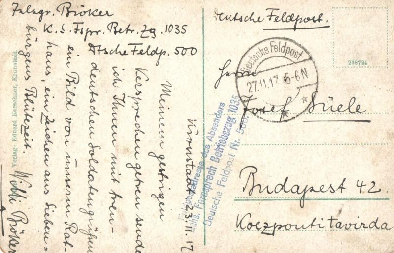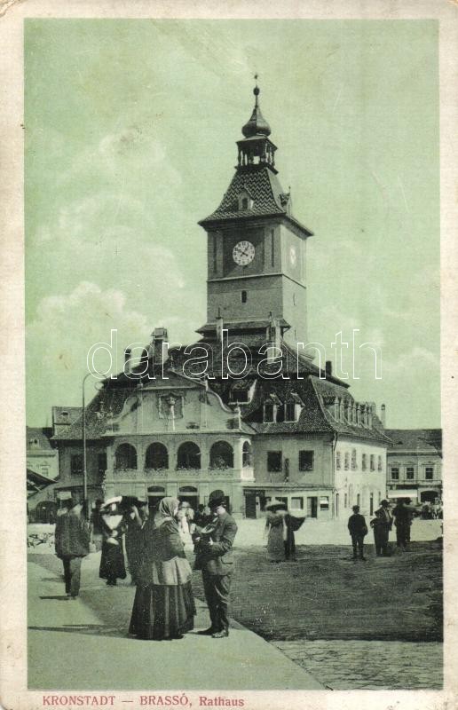 Brassó, Brasov, Kronstadt; Városház. Eduard Kerschner kiadása / Rathaus / town hall + Feldpostadresse des Absenders echs. Fernsprech Betriebszug 1035. Deutsche Feldpost Nr. 500. (EK)