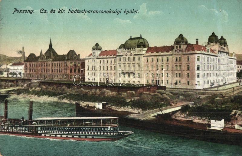 Pozsony, Pressburg, Bratislava; Hadtestparancsnokság épület, gőzhajó /... https://www.darabanth.com/de/292-Fernauktion/292.0/Ansichtskarten/Slowakei~300007/Pozsony-Pressburg-Bratislava-Hadtestparancsnoksag-epulet-gozhajo-army-headquarters-steam~II1547255