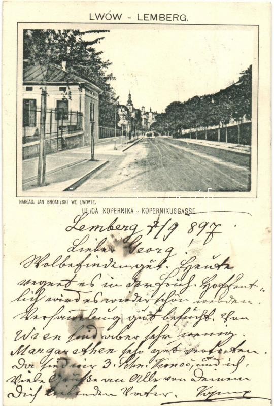 1897 (Vorläufer!) Lviv, Lwów, Lemberg; Ulica Kopernika, Naklad. Jan Br... https://www.darabanth.com/de/292-Fernauktion/292.0/Ansichtskarten/Ukraine~300054/1897-Vorlaufer-Lviv-Lwow-Lemberg-Ulica-Kopernika-Naklad-Jan-Bromilski-Kopernikusgasse-~II1546999