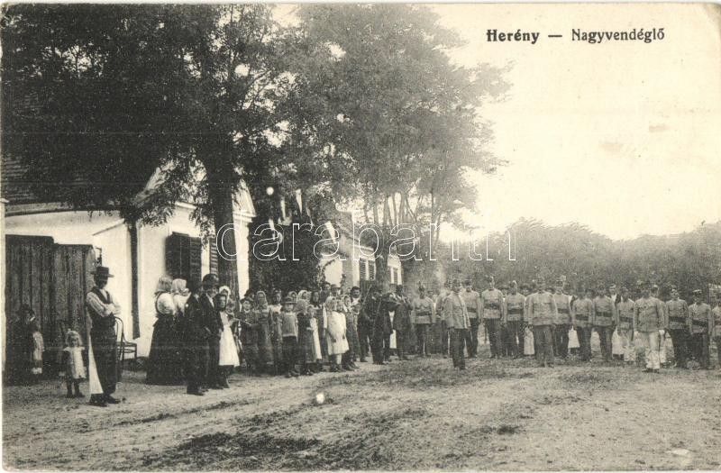Herény, Nagyvendéglő, K.u.K. katonák (EK) https://www.darabanth.com/de/292-Fernauktion/292.0/Ansichtskarten/Ungarn~300005/Hereny-Nagyvendeglo-KuK-katonak-EK~II1545424