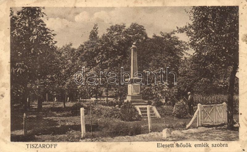 Tiszaroff, Elesett hősök emlékszobra, Lénárt Dezső kiadása (fl) https://www.darabanth.com/de/292-Fernauktion/292.0/Ansichtskarten/Ungarn~300005/Tiszaroff-Elesett-hosok-emlekszobra-Lenart-Dezso-kiadasa-fl~II1548927