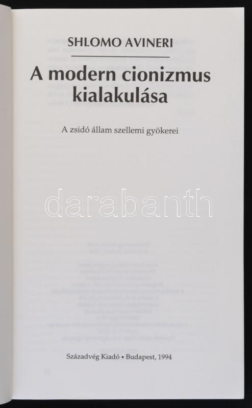 Avineri, Shlomo: A modern cionizmus kialakulása. Bp., 1994, Századvég ... https://www.darabanth.com/de/292-Fernauktion/292.0/Bucher/Bucher-Judaica~200003/Avineri-Shlomo-A-modern-cionizmus-kialakulasa-Bp-1994-Szazadveg-Kiado-Papirkotesben-j~II1521073