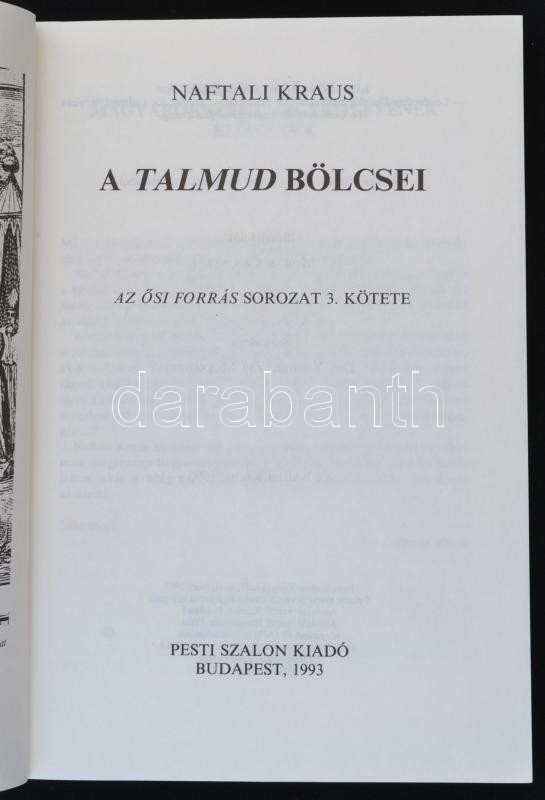 Kraus, Naftali: A Talmud bölcsei. Bp., 1993, Pesti Szalon. Papírkötésb... https://www.darabanth.com/de/292-Fernauktion/292.0/Bucher/Bucher-Judaica~200003/Kraus-Naftali-A-Talmud-bolcsei-Bp-1993-Pesti-Szalon-Papirkotesben-o-allapotban~II1520751