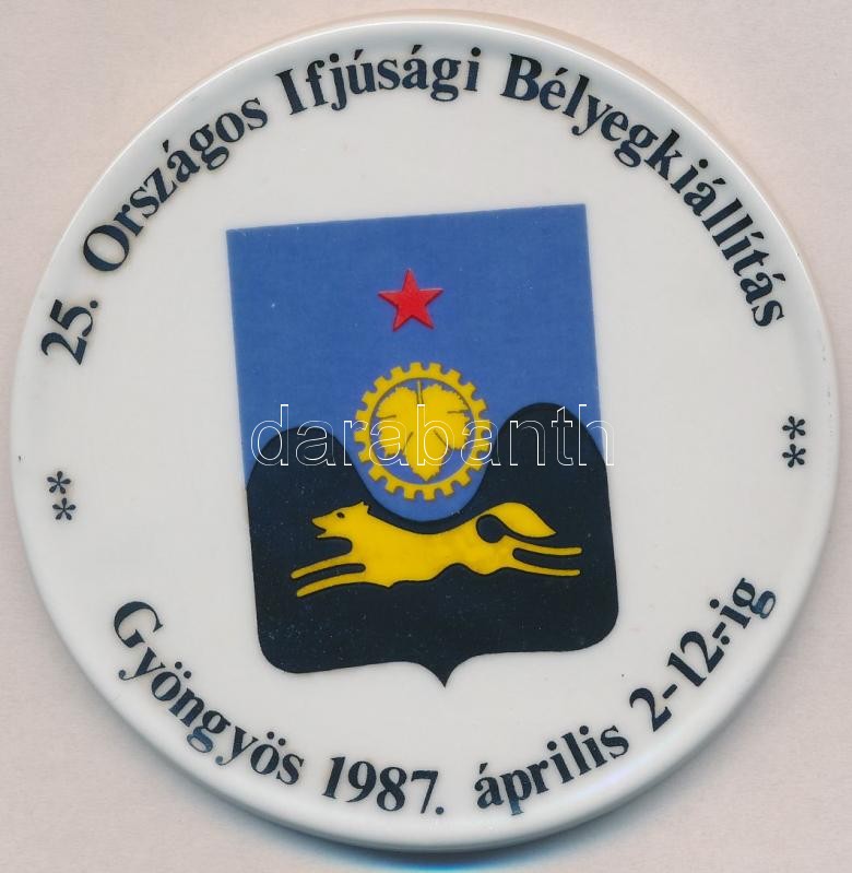 1987. "25. Országos Ifjúsági Bélyegkiállítás - Gyöngyös 1987. április ... https://www.darabanth.com/de/292-Fernauktion/292.0/Numismatik/Ungarische-Gedenkmunzen-Plaketten~400009/1987-25-Orszagos-Ifjusagi-Belyegkiallitas--Gyongyos-1987-aprilis-2-12-ig-festett-je~II1547391