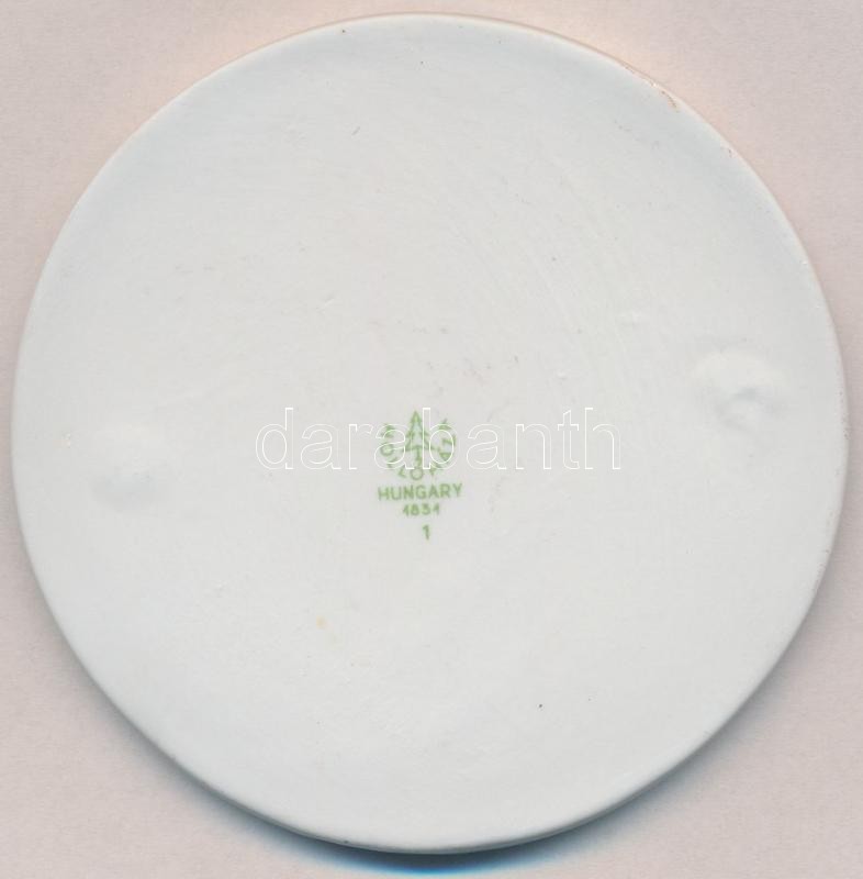 Beschreibung: 1987. "25. Országos Ifjúsági Bélyegkiállítás - Gyöngyös 1987. április 2-12-ig" festett, jelzett, egyoldalas Hollóházi plakett (89mm) T:2