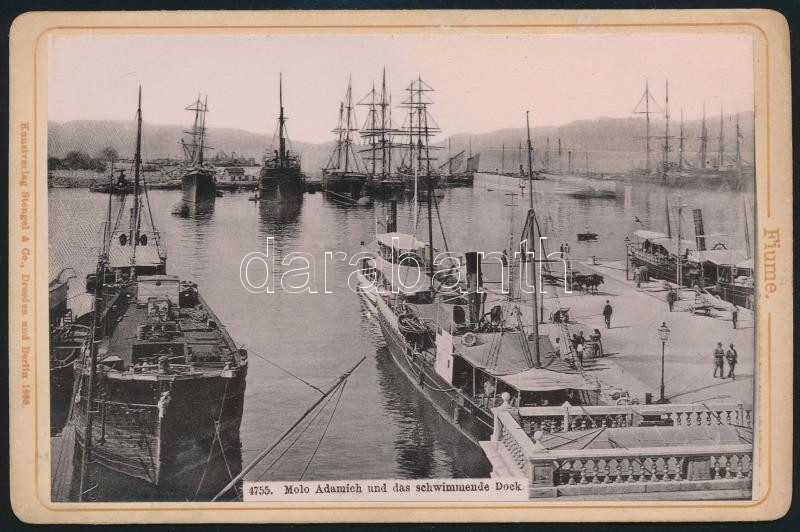 1899 Fiume, Molo Adamich, úszódokk, kikötő, gőzhajók, Stengel & Co. 4755., kartonra kasírozva, 10x16 cm / Fiume, port, steamships, photo
