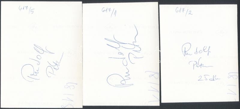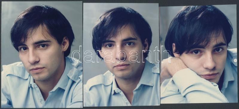 Beschreibung: cca 1978 Rudolf Péter(1959-) színművész 3 db aláírt, vintage fotója még ,,hajas" korából, 12,5x9,5 cm